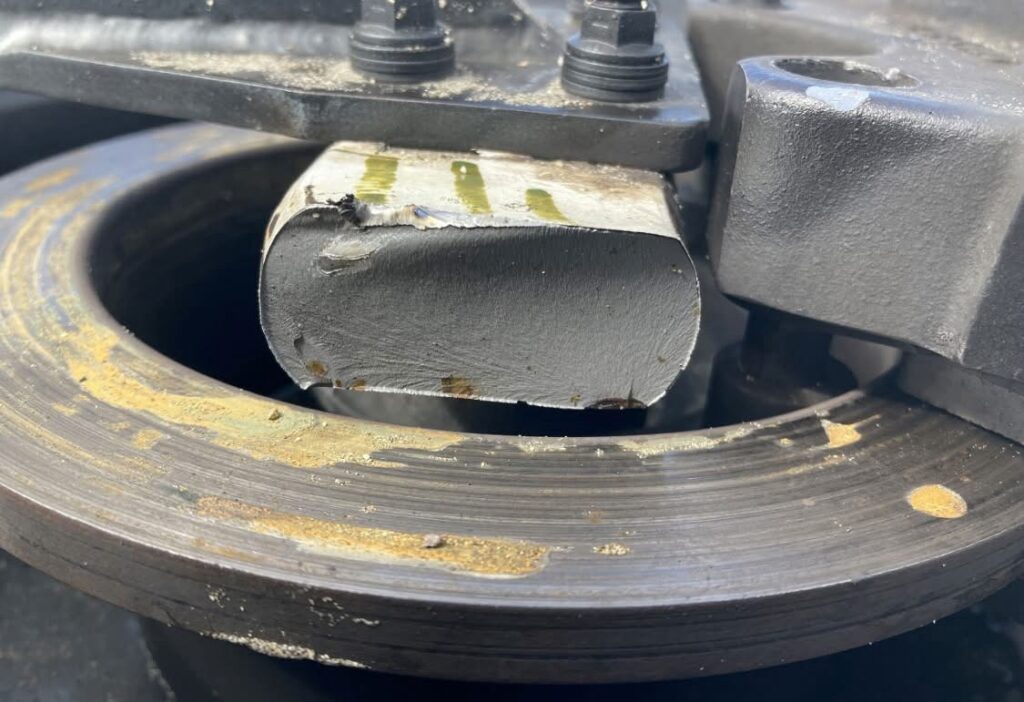 The crack initiation sites contained iron oxides with elements typical of salt and marine environments. The fatigue crack initiation site near the larger ratchet mark contained a corrosion pit. These features indicated that the gear leg fractured due to the stress concentration of fatigue cracks that had propagated inward from the lower surface of the leg. The fatigue cracks initiated from corrosion pits in an area of the leg without paint and primer.