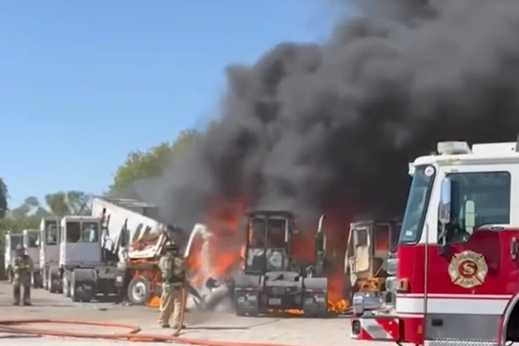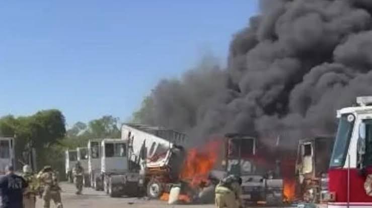 At least 10 tractor-trailers were damaged from the crash, which also sparked grass fires, Fort Worth FD said.