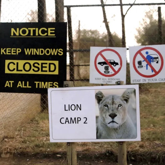 “That’s absolutely forbidden at our park,” said Scott Simpson, assistant operations manager at Lion Park. “There are numerous signs, and we hand out slips of paper to all guests warning them to keep their windows closed.”